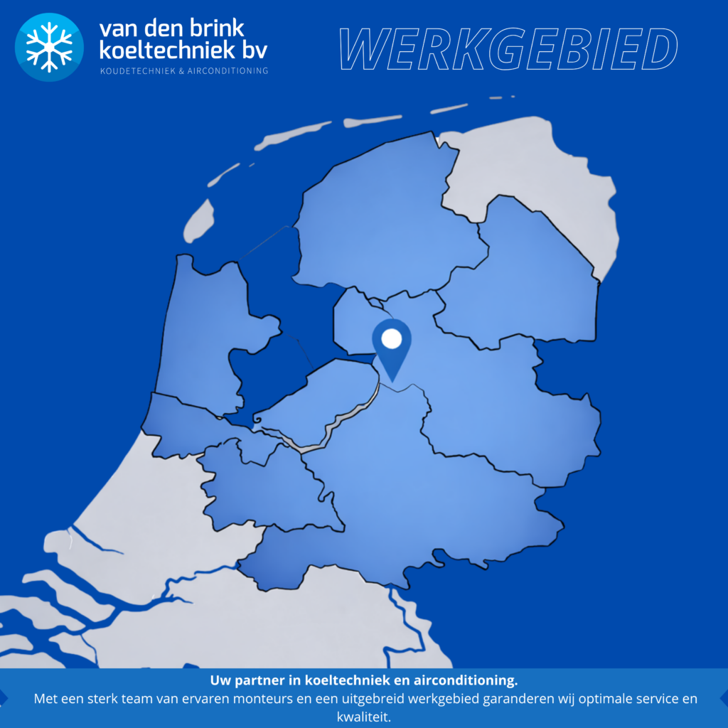 Wil je een airconditioning in Almere laten installeren? Neem dan contact op met Van den Brink Koeltechniek. Een van onze vakkundige en NVKL-erkende installateurs komt dan bij jou langs om binnen 1 dag het systeem te installeren. Regelmatig kunnen de installateurs bij jou het systeem komen controleren en onderhouden. Twijfel dus niet en gun jezelf een gezond binnenklimaat met een airco in Almere, Apeldoorn, Meppel, Genemuiden, Dronten, Hattem, Sneek, Heerde, Epe, Vaassen, Kampen en Zwolle.
